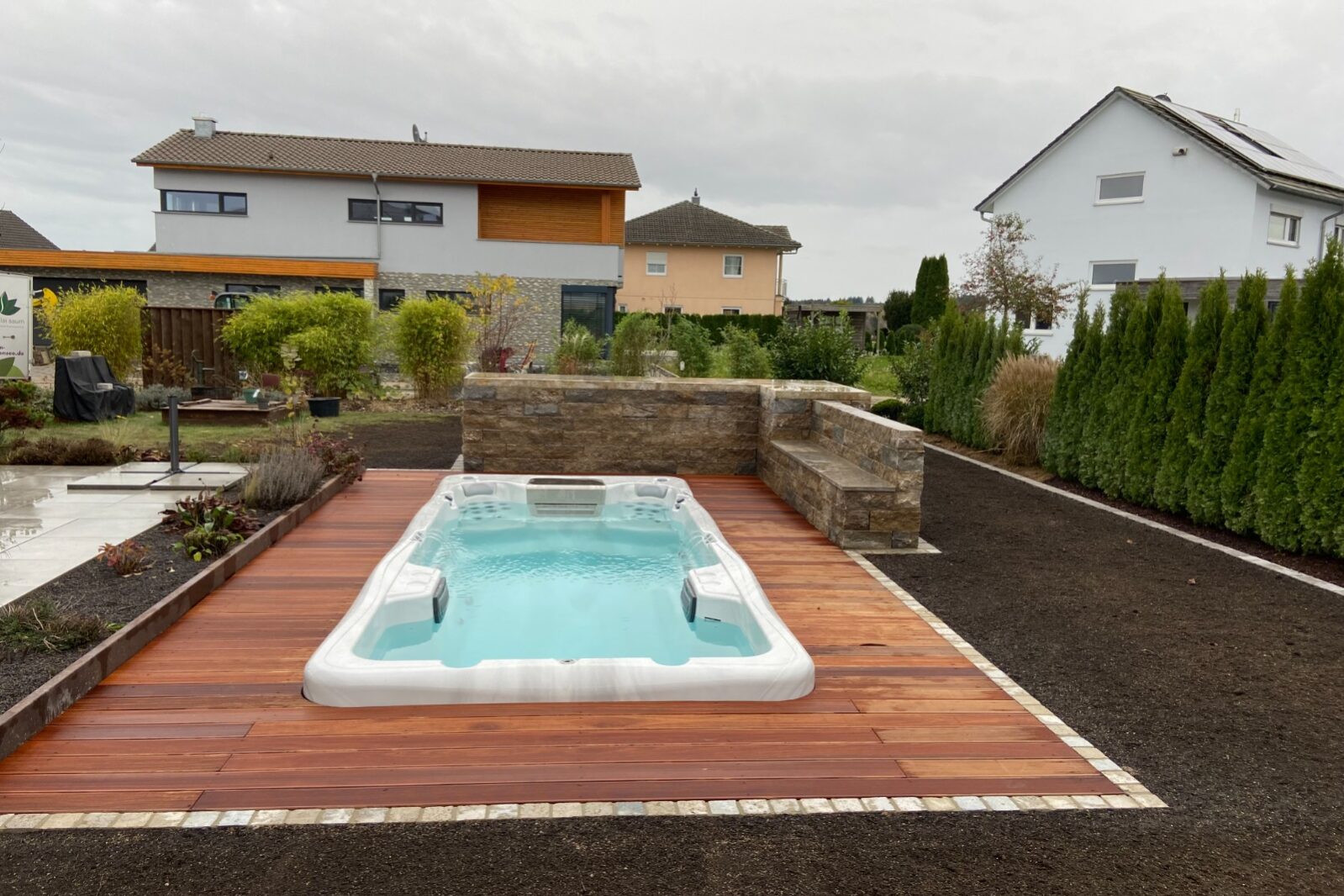 Ein Swimspa punktet mit vielfältigen Anwendungsmöglichkeiten. Als eine Kombination aus Pool und Whirlpool können Sie nicht nur die sprudelnden Massagedüsen zur Entspannung nutzen, sondern ebenso durch die Gegenstromanlage sportlich aktiv werden. Er eignet sich ideal für einen hochwertigen Wellnessgarten für die ganze Familie.
